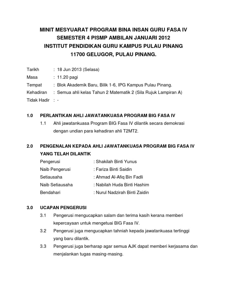 Secara umumnya, format minit mesyuarat panitia adalah seperti berikut: Untuk memastikan perjalan pengurusan sekolah berjalan dengan lancar, mesyuarat perlu dilakukan. Terutama kepada panitia bahasa arab. ~ungkapan mengesahkan atau disahkan diikuti dengan pindaan. Use the download button below or simple online reader.