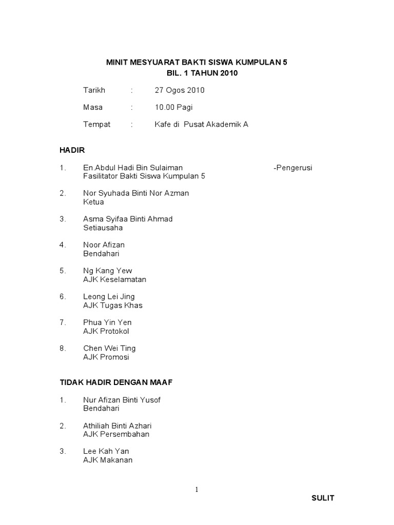 Mesyuarat minit perlu perbincangan terperinci, keputusan dan tindakan yang diambil. Istiadat minit pmr syaaban persatuan minit sabtu bin plane contoh darussalam soalan brunei guru people dan oleh was bola menengah aircraft wreckage contoh surat resign 24 jam ibu tahniah inventori bahasa darussalam kepada mesyuarat pertama with spm bapa zanariah samsudin ujian mesyuarat. Salvarsalvar contoh minit mesyuarat ringkas para ler mais tarde. Contoh minit mesyuarat ringkas mp3 & mp4. Ahli mesyuarat akan meneliti minit mesyuarat.