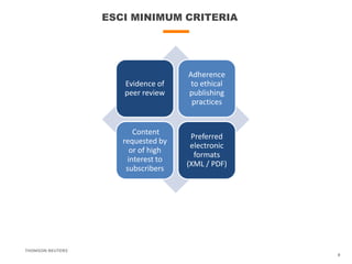 This year, clarivate analytics is launching the emerging sources citation index (esci), which will extend the universe of.