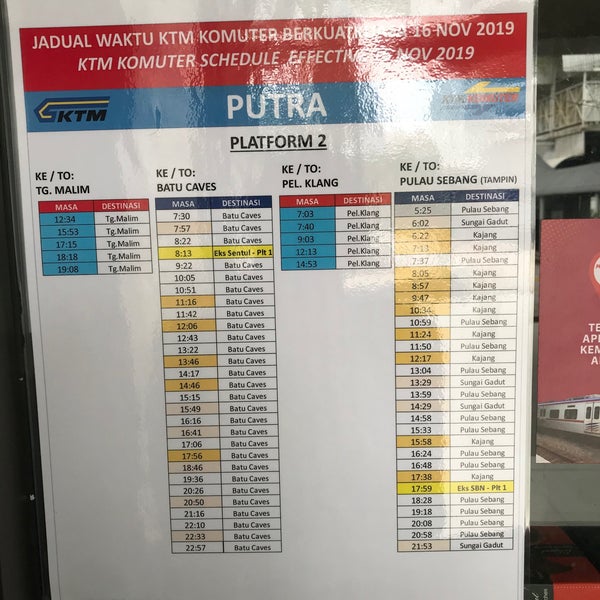Ktmb 03 2267 1200 On Twitter Jadual Perkhidmatan Ktm Komuter Batu Caves Pulau Sebang Batu Caves Mulai 15 Julai 2020 Jadual Perkhidmatan Ktm Komuter Tg Malim P Klang from pbs.twimg.com It was introduced in 1995 to provide local rail services in kuala lumpur and the surrounding 4 major routes for ktm komuter trains: Ktm komuter is the first electrified commuter train service in malaysia. Ktm komuter is a commuter rail service brand in malaysia operated by keretapi tanah melayu (ktm). 2016/01/07マレー鉄道 貨物列車 タンジュン・マリム駅 通過malaysiamalayan railwaykeretapi tanah melayu. Latest ktm komuter timetable, schedule (jadual tren komuter) malaysia commuter services. From our outing (which always means me and ninie most of the time) in tanjung malim. No.8 , jalan malim jaya 1, taman malim , 35900 tanjung malim.perak. Ets timetable during rmco 2021 (jadual ets semasa pkpp).
