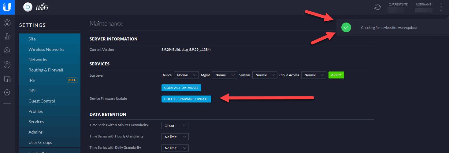 To verify the new version was properly installed log into the unifi web interface and go to the settings \ maintenance menu.