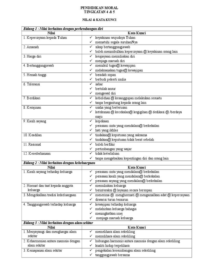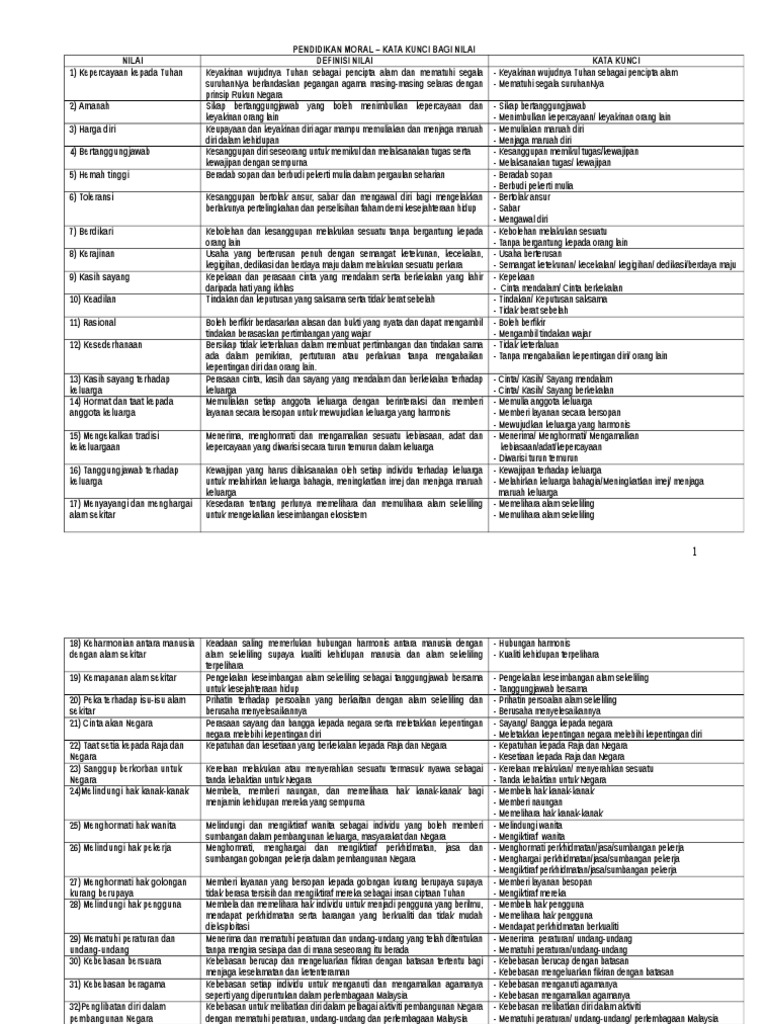 Related : Kata Kunci Nilai Moral / Nilai Kata Kunci 1 - Nilai nilai moral dan penerangannya bil nilai penerangan definisi 1 kepercayaan kepada keyakinan wujudnya tuhan sebagai pencipta alam dan tuhan mematuhi segala suruhannya berlandaskan pegangan agama masing masing selaras dengan prinsip rukun negara..